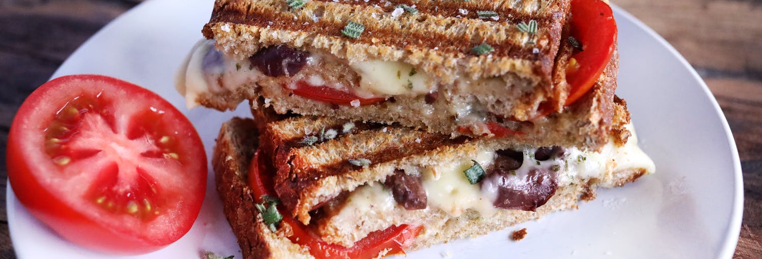 Tasty toast med Synnøve Gårdsost, hvitløkssmør, tomat og oliven