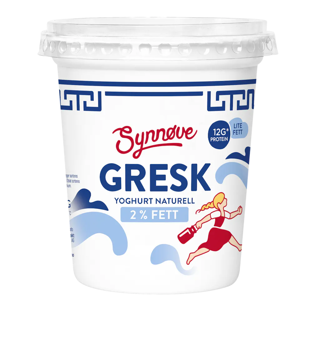 Synnøve helt ekte Gresk Yoghurt er selvsagt laget i Hellas. Yoghurten har en fyldig konsistens, inneholder lite fett og er rik på proteiner.