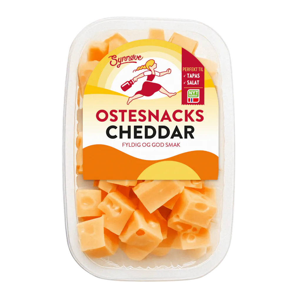 Smaksopplevelsen Synnøve Cheddar kjennetegnes av sin fristende gyllenoransje farge og en lett porøs konsistens. Smaken er mild og herlig nøtteaktig med en svak syrlighet. Den tilfører maten en rund og delikat fylde uten å overdøve de andre råvarene.