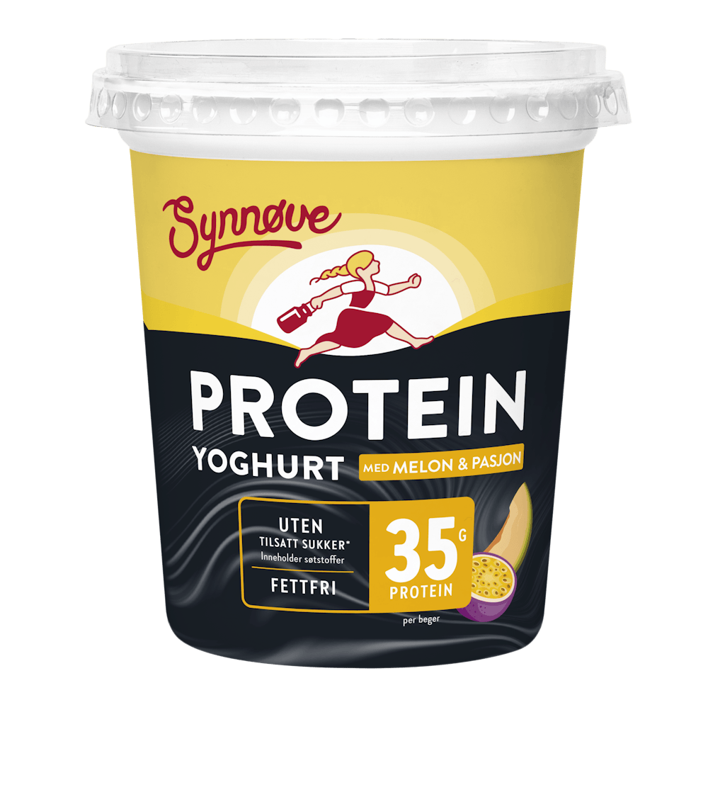 Synnøve Proteinyoghurt er ekstra rik på protein og fettfri. Yoghurten er ikke tilsatt sukker, men er søtet med søtstoffer. Hvert beger inneholder 35 gram protein. Perfekt for deg som trenger påfyll før eller etter trening, eller ønsker en litt sunnere start på dagen.