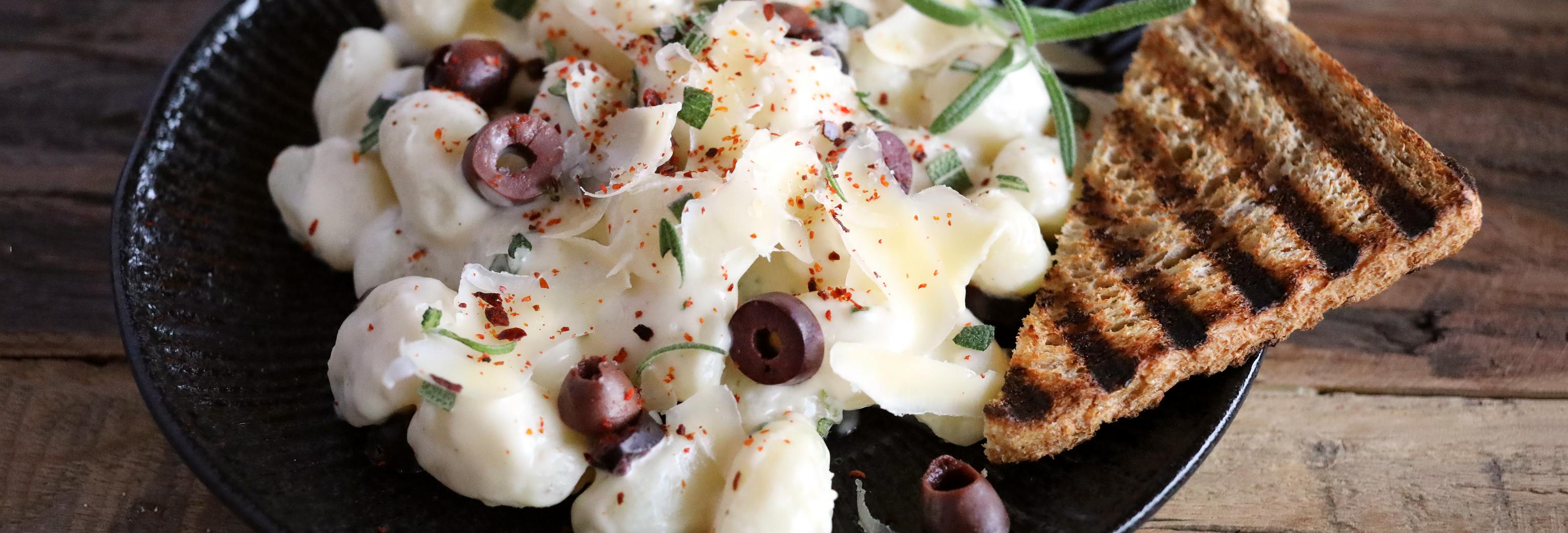 Gnocchi med Rabagast ostesaus, oliven og rosmarin