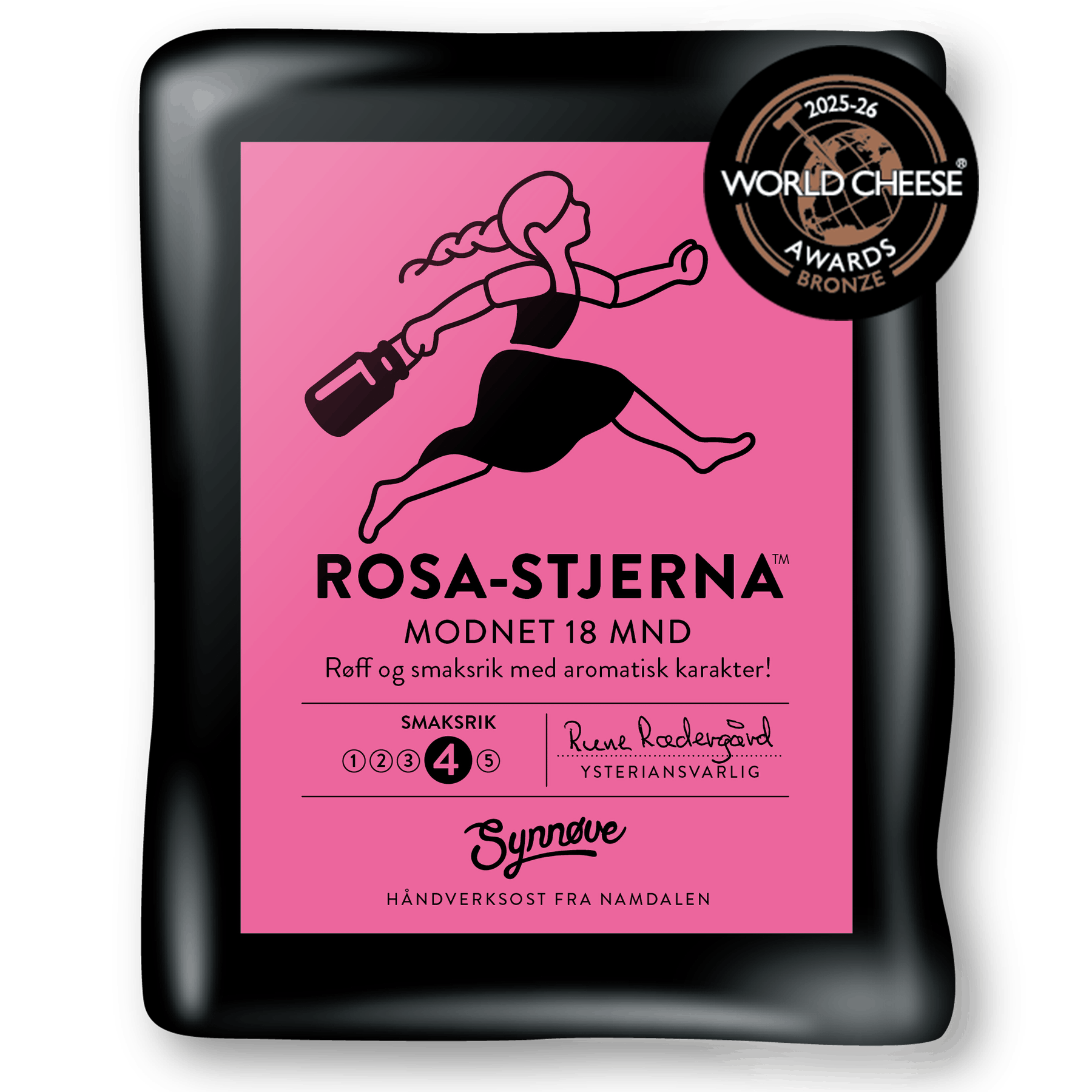 Synnøve Rosa-Stjerna er en variant av Rabagast som er kraftigere og mer kompleks, og med tydelig tekstur og smaksdybde. Perfekt om du glad i smaksrik ost eller ser etter en ost til tapas eller dessert.